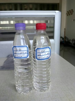 工業(yè)濃鹽酸顏色發(fā)黃,影響外觀,影響銷售,經(jīng)過我們的樹脂處理過后,變?yōu)闊o色。處理前后見下圖: